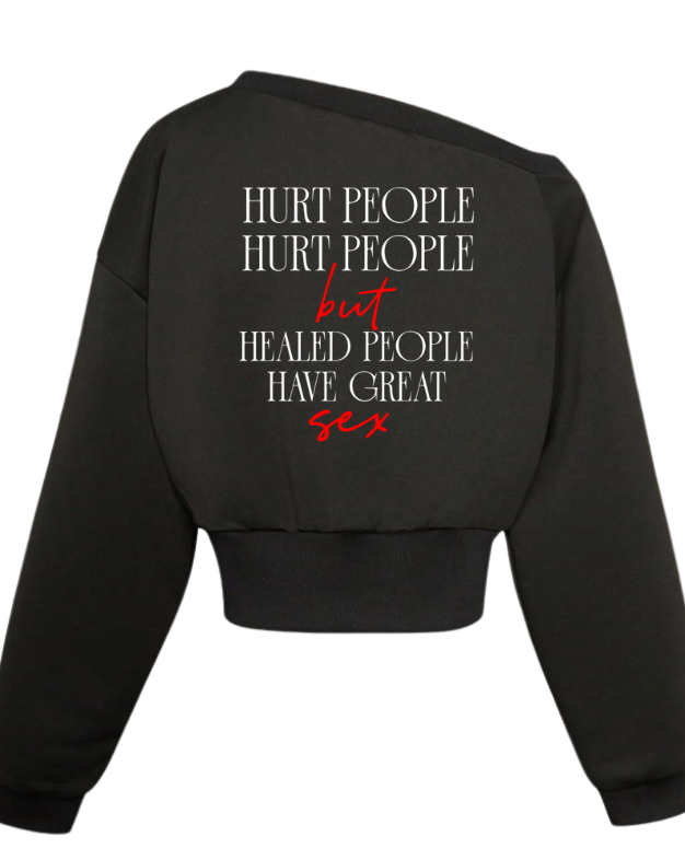 - This cropped sweatshirt features a stylish, oversized fit with long sleeves and a cropped hemline. The front showcases a prominent W logo with Healed written beneath it, adding a unique touch to the design. The back reads a sassy quote about healing.
