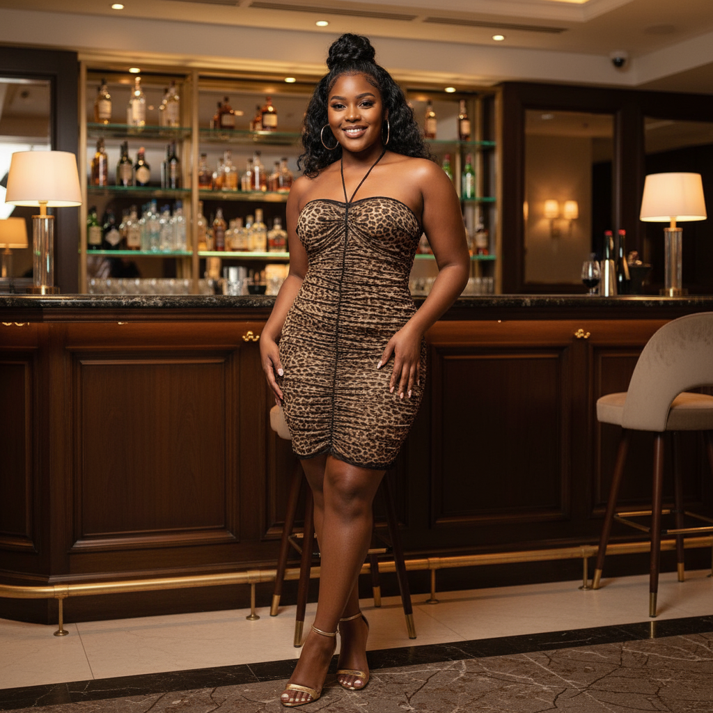 Sculpted with precision ruching that flatters every curve, this midi bodycon dress combines form-fitting design with breathable mesh construction. The strategic gathering creates dimension and movement while maintaining a sleek silhouette. Perfect for evening events or upscale occasions, this piece delivers sophisticated elegance with modern edge. The midi length offers versatility, pairing effortlessly with heels or statement accessories for a polished, confident look.